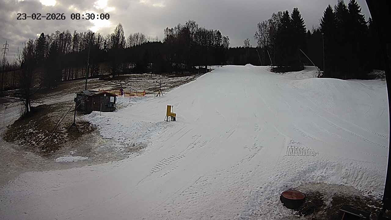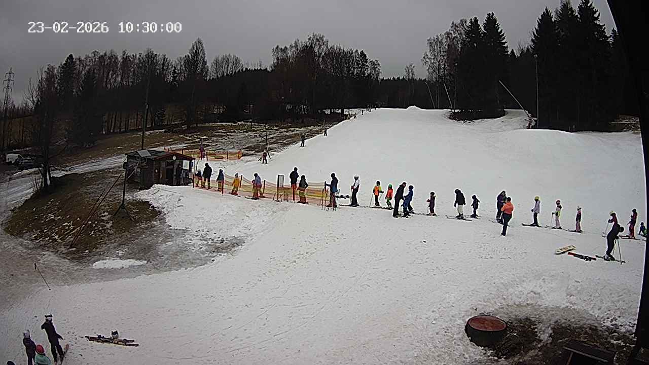 I když je počasí jako na houpačce, stále jedeme na obou vlecích od 9 do 16 hodin. Sněhu na sjezdovkách je dostatek, vše v provozu - vleky, půjčovna, občerstvení i lyžařská škola.