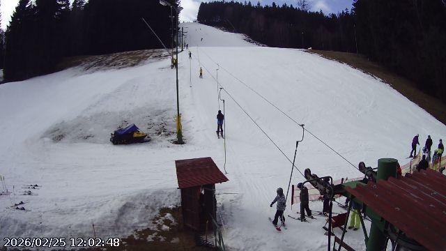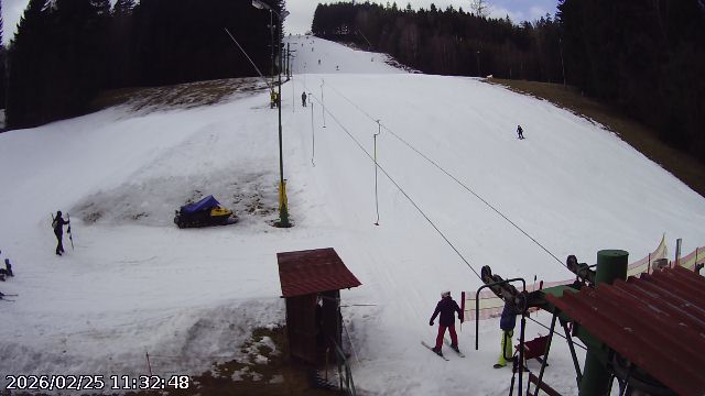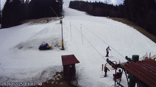 I když je počasí jako na houpačce, stále jedeme na obou vlecích od 9 do 16 hodin. Sněhu na sjezdovkách je dostatek, vše v provozu - vleky, půjčovna, občerstvení i lyžařská škola.