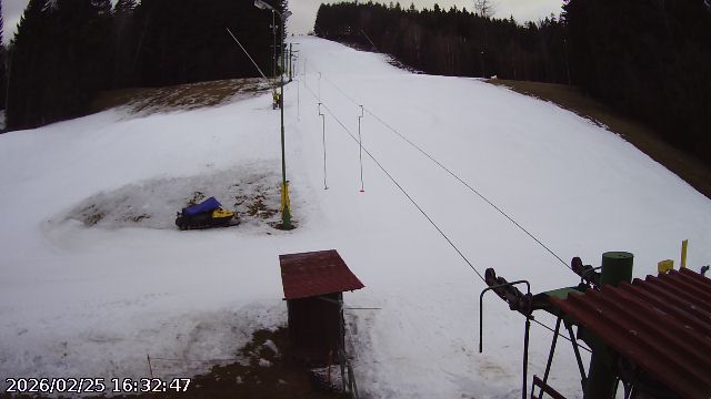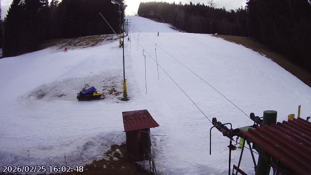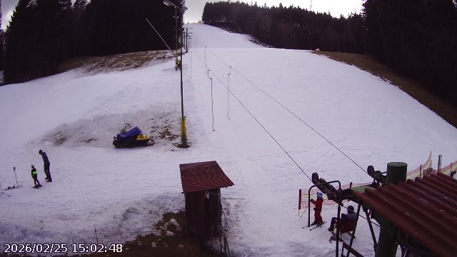 I když je počasí jako na houpačce, stále jedeme na obou vlecích od 9 do 16 hodin. Sněhu na sjezdovkách je dostatek, vše v provozu - vleky, půjčovna, občerstvení i lyžařská škola.